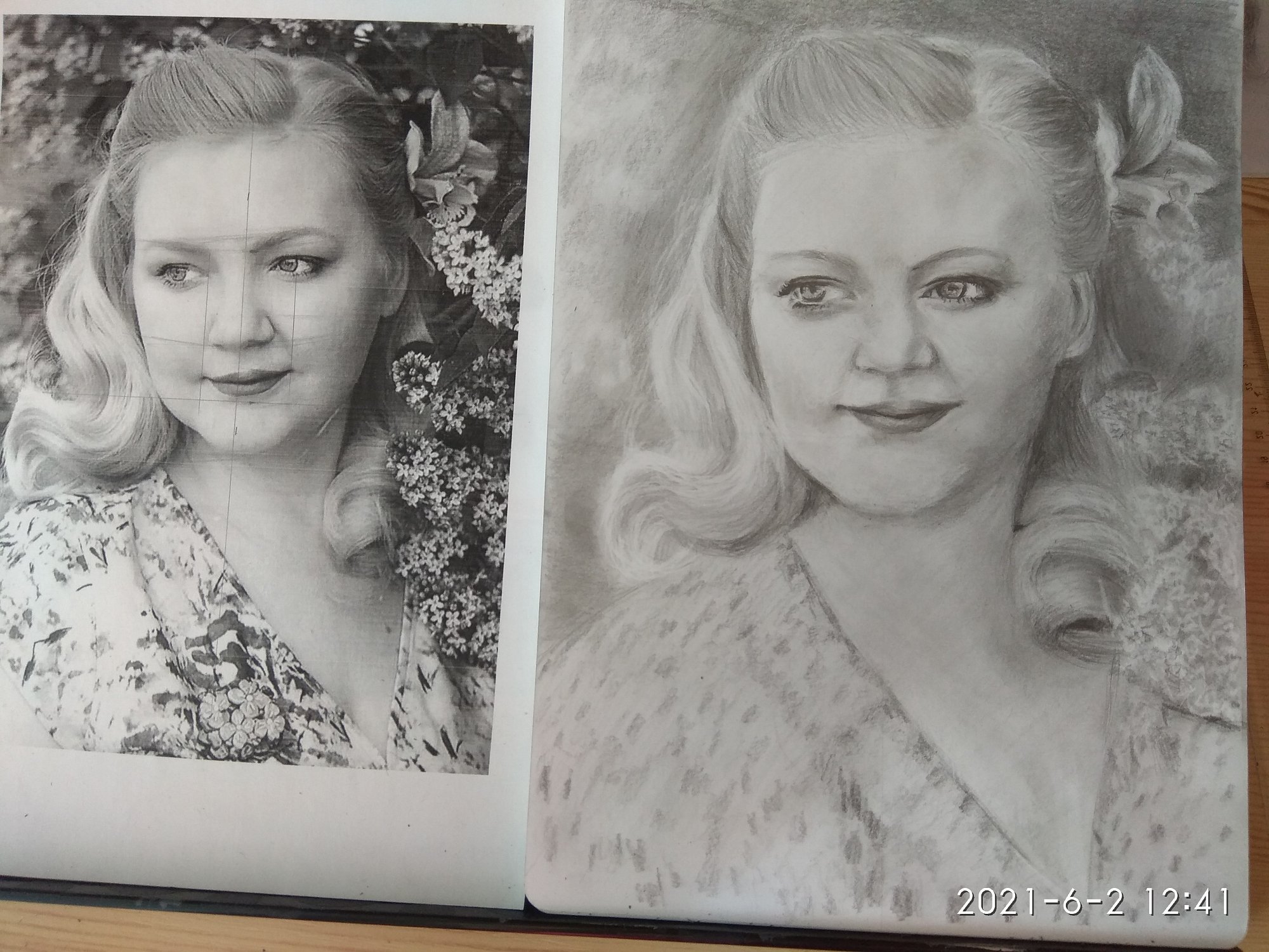 Dobrý deň pani Cibulková,ďaľší super kurz ,,step by step,,. Pekne vysvetlené a ukázané. Môj výtvor síce nie je identická podoba, ale na precvičenie techniky super. Posledný krok - doladenie detailov a podoby som vynechala, nech portrét ,,nerozšmudlám,,.Má síce väčšie oči, ale aspoň nepôsobí unavene ?. Pripomienky uvítam.