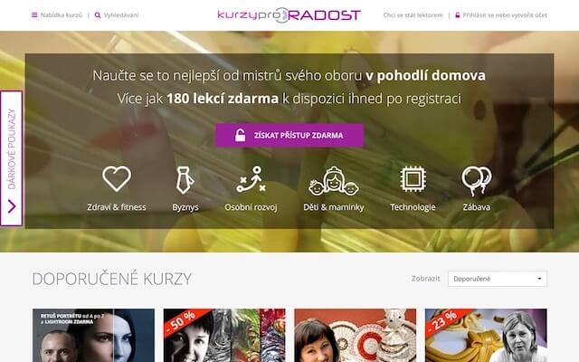 Nabízíme vám kurzy zaměřené na kreativitu, technologie, byznys, osobní rozvoj, zdravý životní styl i kurzy pro děti a maminky. To vše od profesionálních lektorů, jež jsou jedničkami v daném oboru.